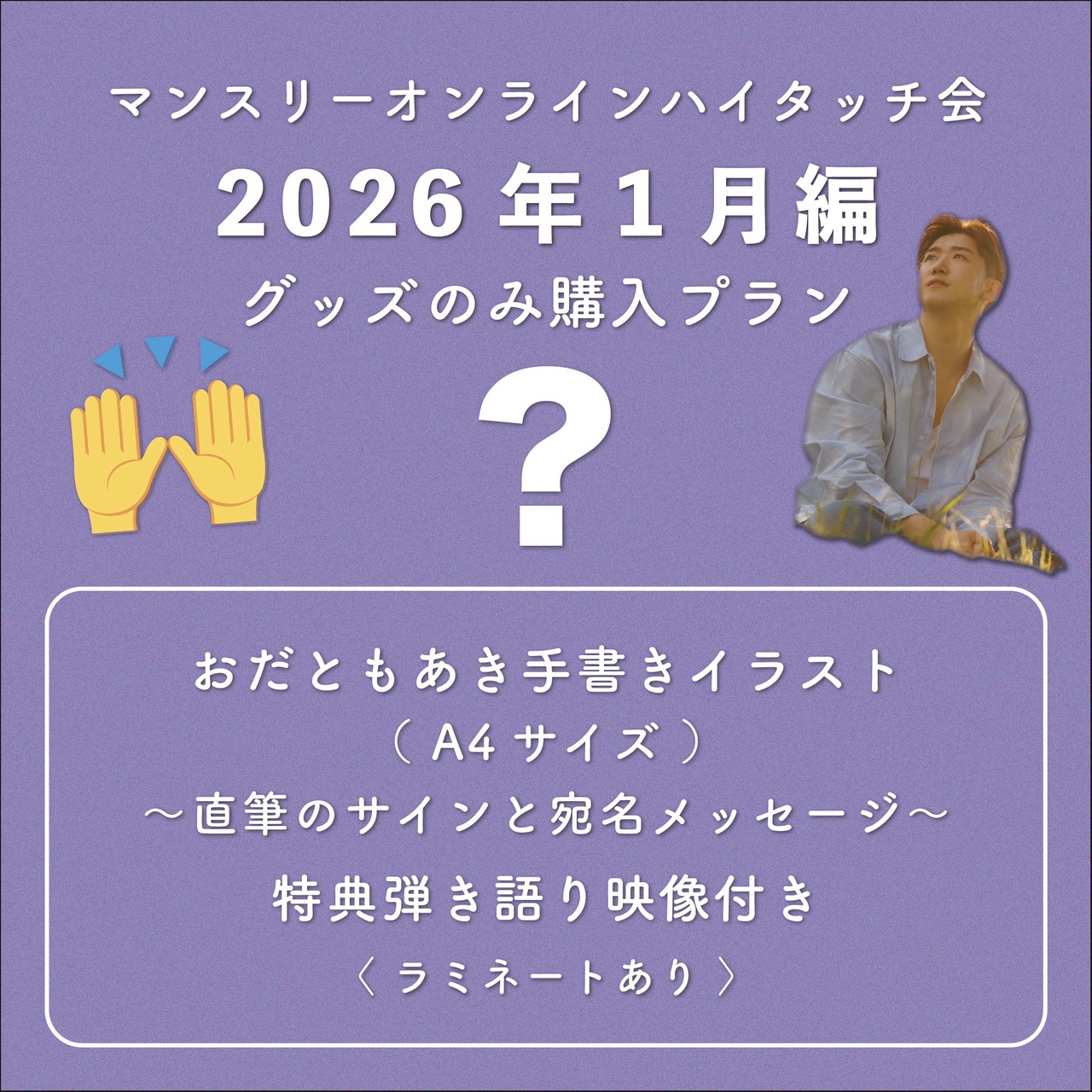 【3月19日(木)23:59まで】《 2026年1月編 》マンスリーオンラインハイタッチ会グッズのみプラン(宛名ありサイン付き)